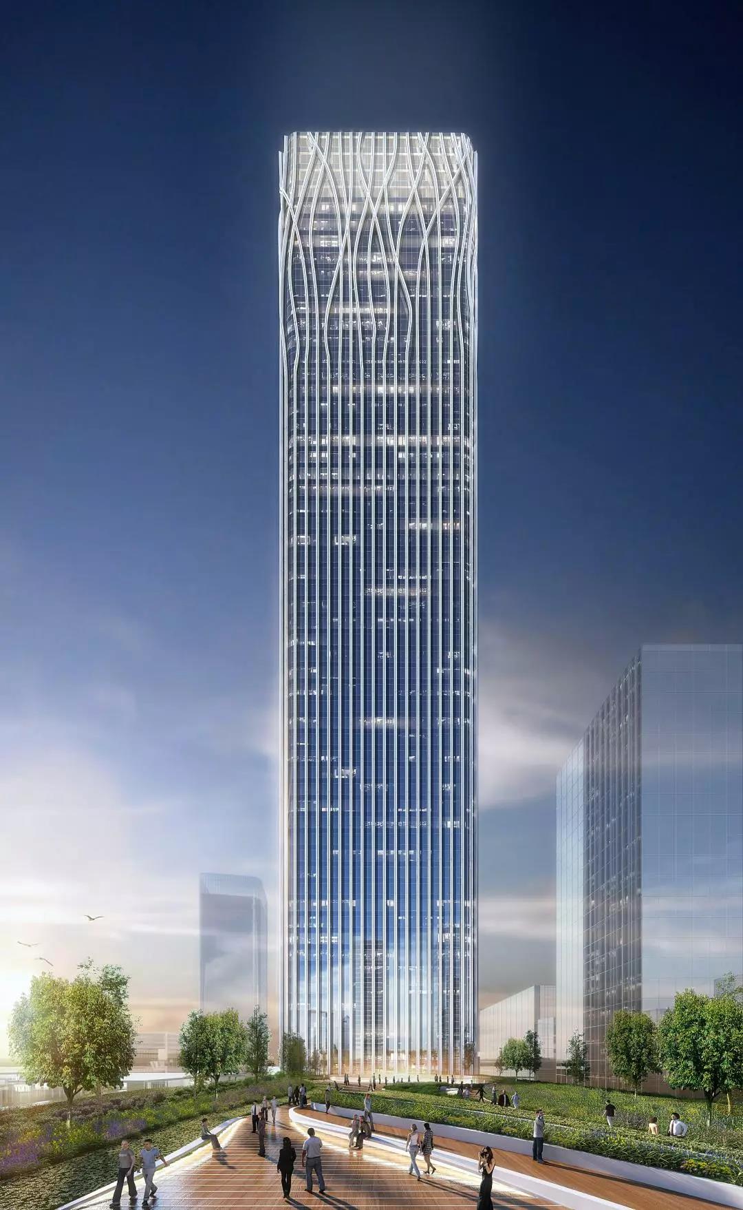 該項目由韓國第三大跨國企業(yè)——SK集團投資建設(shè),SK集團是主要以能源化工、信息通信為兩大支柱產(chǎn)業(yè)的國際性集團,目前世界五百強排名第57位,年銷售收入808億美元。此次建筑設(shè)計由香港RAD建筑設(shè)計事務(wù)所創(chuàng)始人、設(shè)計大師艾倫親自主持,其以精巧的“龍鱗”為創(chuàng)意元素搭配超大單元板塊和超寬鋁板相間排布,打破常規(guī)外立面設(shè)計,勾勒出龍鱗豐富的層次與形態(tài),以視覺沖擊為核心,將275米高的摩天大廈拔地倚天的恢弘氣勢展現(xiàn)地淋漓盡致。