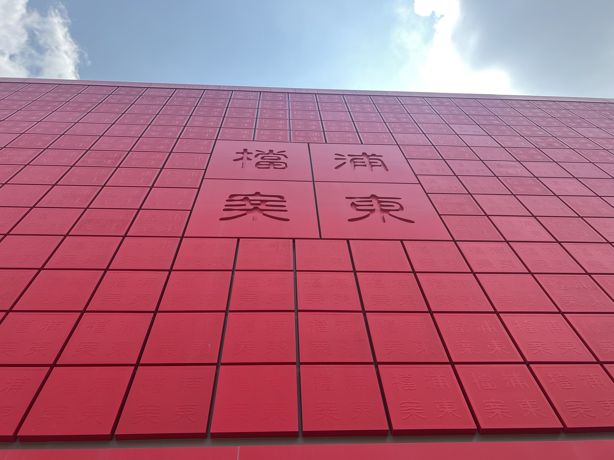 由鋁單板加工而成的“竹簡”上端刻著小篆百家姓,寓意載百姓之歷,由百姓創(chuàng)史。印章陽刻“浦東檔案”四個大字,方正莊重,沉穩(wěn)大氣,中國紅的底色加持,更是彰顯了檔案文化與歷史傳承。