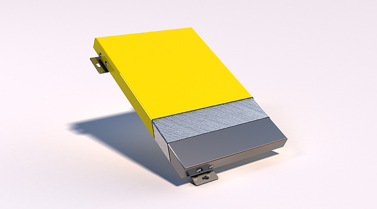 烤瓷鋁單板采用鋁合金板為基材,表面涂裝水性陶瓷涂料,通過加熱固化方式,形成性能與陶瓷相似的涂層,具有耐高溫、不燃性、超強耐候、易清潔、高硬度、抗劃傷、抗菌等優(yōu)勢,且不含傳統(tǒng)有機溶劑,屬于綠色環(huán)保材料。