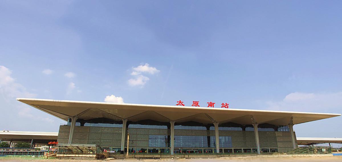太原南站位于太原市小店區(qū)北營,東臨東山過境高速公路,西接太原武宿國際機(jī)場(chǎng),南依南環(huán)高速公路,北靠長(zhǎng)風(fēng)大街,地處國家級(jí)太原高新技術(shù)開發(fā)區(qū)、太原經(jīng)濟(jì)技術(shù)開發(fā)區(qū)及武宿物流區(qū)等三大園區(qū)交叉輻射的核心地段。占地面積45公頃,站房主體結(jié)構(gòu)為地上兩層地下一層,建筑面積約20.06萬平方米,其中客運(yùn)站房建筑面積5.5萬平方米以上,車場(chǎng)規(guī)模為10臺(tái)22線,設(shè)計(jì)年發(fā)送旅客量可達(dá)4000萬人次以上。工程投資估算總額約30億元以上,由鐵道部和山西省共同出資建設(shè),是山西省內(nèi)第一座高標(biāo)準(zhǔn)現(xiàn)代化的大型鐵路客運(yùn)站,為太原市標(biāo)志性建筑之一。